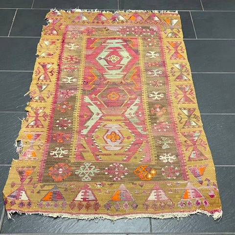 Lad dig fascinere af den fortryllende skønhed og den enestående kvalitet af dette kelim!