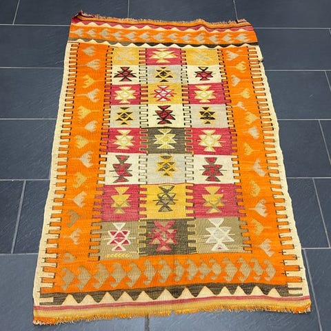 Afghansk Sumakh kilim, 180 x 116 cm, 100% rå uld på uld, fremstillet i slutningen af det 20. århundrede, i god tilstand med alders- og brugsspor. Klik på den blå "gå til varen" knap, for at købe eller byde på denne vare. Den samlede pris vil blive vist inden du afgiver dit bud.