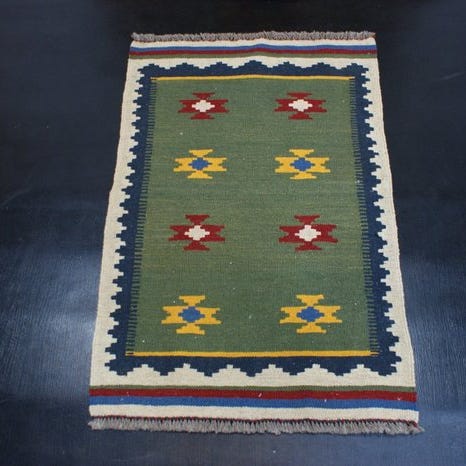 På grund af sin kombination af traditionelt Kelim-håndværk og samtidsdesign egner dette stykke sig både som gulvbelægning og som dekorativt vægtæppe.