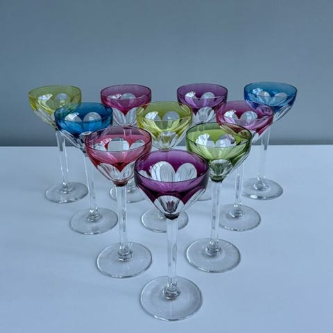 Val Saint Lambert krystalglas, 14 stykker fra Belgien, fremstillet af Val Saint Lambert og fra 1980–1990, cirka 12 cm høje og 7 cm i diameter, seks stykker med mindre ridser ved kanten og resten i perfekt stand. Klik på den blå "gå til varen" knap, for at købe eller byde på denne vare. Den samlede pris vil blive vist inden du afgiver dit bud.
