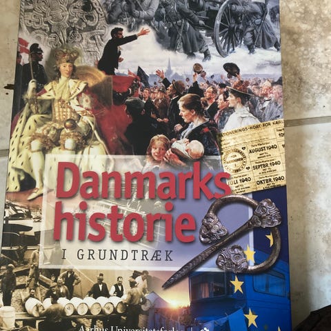 Danmarks historie i grundtræk bog med historisk indhold. Bogen indeholder en oversigt over Danmarks historie og er illustreret med forskellige billeder og tekster. Sender ikke for køb under 200 kr.