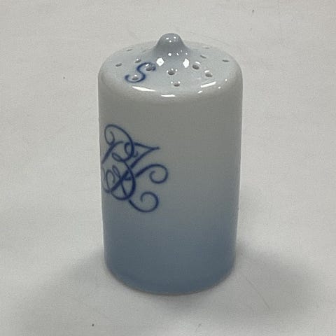 Bing og Grøndahl Blå Tone Hotel med Logo Salt- og Peberbøsser VI SENDER