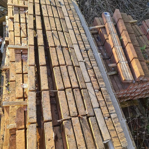 Stængerne har en rustik overflade med spor af mørtel og brugstegn.