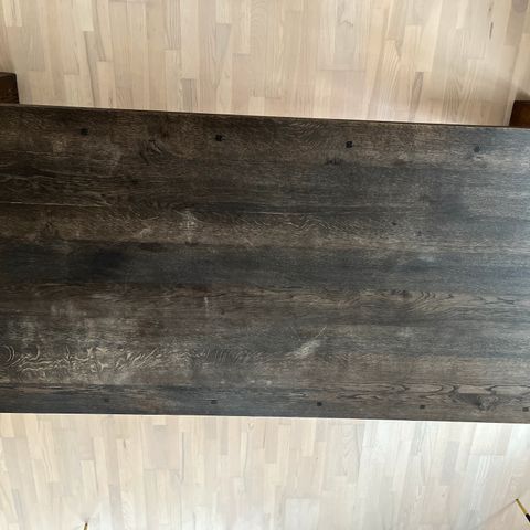 Stort spisebord i fornem massiv kvalitet fra Olsson Møbler/IC Interiør med ekstra tillægsplade på 50 cm. samt 6 stole med sæder i sort læder, som kombinerer træets naturlige udseende med komfortable siddepladser. Nypris ca. kr. 26.000, sælges grundet flytning samlet for nu kun kr. 6.000