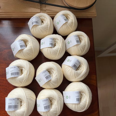 Krea Deluxe bomuldsgarn garn i gul fra samme lot.
