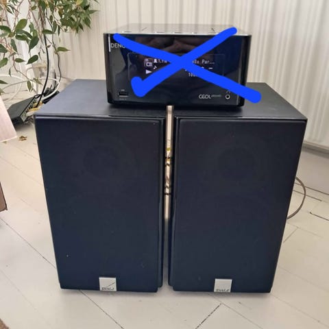 4 stk Dali trio højtaler, virker som de skal, stof er pænt, der er lidt ridser på kabinet
