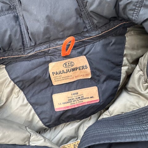 Sælger min Parajumpers Long Bear vinterjakke i sort. Klassisk og meget varm dunjakke med den karakteristiske gule Parajumpers-rem og stor hætte med ægte pels.