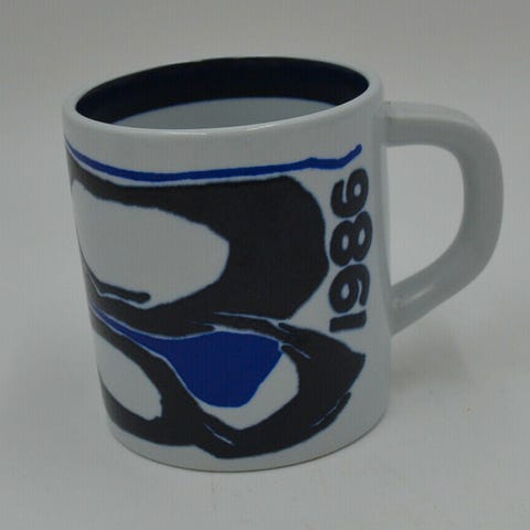 Fajance, Årskrus, Royal Copenhagen, årskrus 1986, designet af Inge-Lise Koefoed, fejlfrit, stort med sølvplade uden gravering.