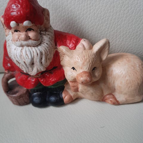 Keramik julenisse, Keramik julenisse håndlavet 20 cm høj til fyrfadslys i hel stand sælges for 100, - kr.