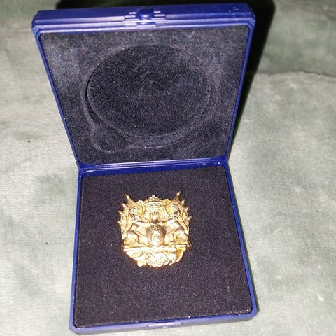 Det store emblem har et mål på 7,5 x 2 cm, hvor det lille måler 2,5 x 1,7 cm.