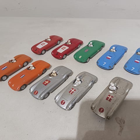 2 stk. unikke tekno biler sælges samlet. Styrbare forhjul, forlygter betjenes- åbnes/lukkes via knap i bunden. Motor klap og døre kan åbnes. Bilerne er 60 år gl. Pris pr. stk.