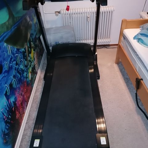 inShape løbebånd med digital skærm, foldbar funktion og brugsvejledning. Udstyret med kontrolpanel til justering af hastighed og træningsprogrammer. Designet til hjemmebrug og egnet til konditionstræning.
