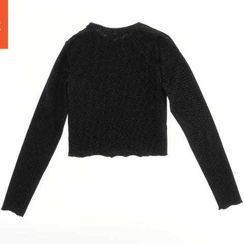 Langærmet sort bluse med blomster fra H&M (str. 158)