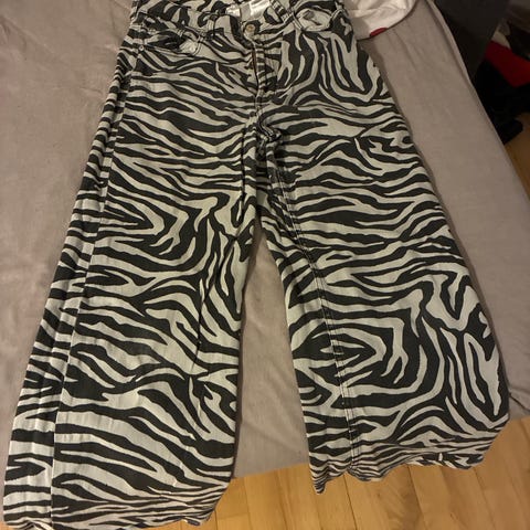 Zebrastribet bukser fra ZE-ZE i en jeans model med stretsh. De er designet med en klassisk pasform og har en traditionel talje med lynlås og knaplukning.