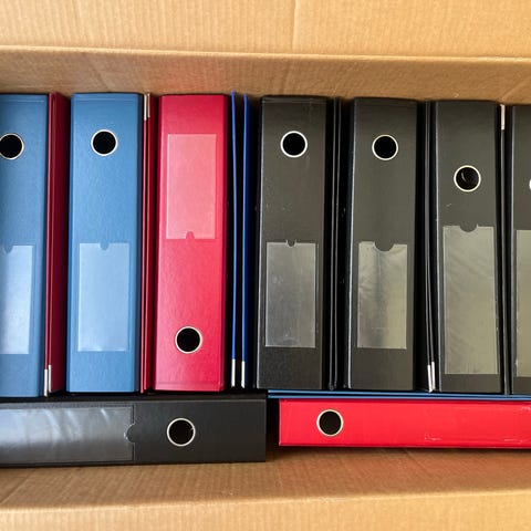 8 stk. A3 (lavformat) – 40 mm ryg, 4 D-ringe . Pris pr. stk.: 100 kr.