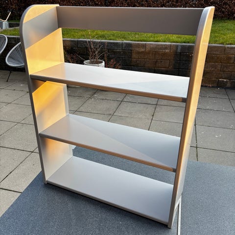 Flexa børnemøbel i træ med grøn finish. Møblet har et åbent design med hylde og plads til opbevaring under bordpladen. Velegnet til leg og opbevaring i børneværelset.
