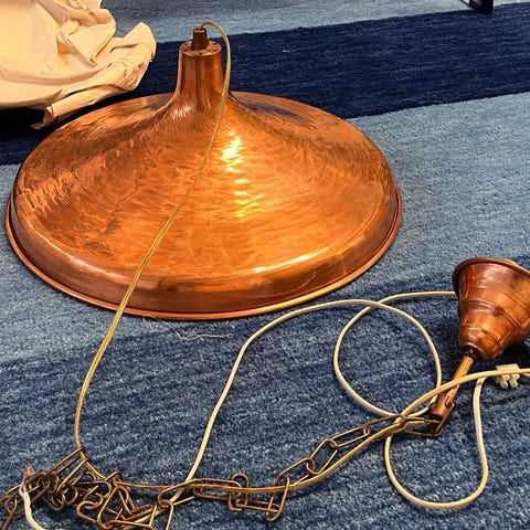 Vintage kobber pendellampe (str. Ø 25,5 cm længde 44 cm)