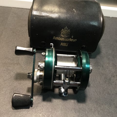 ABU Abumatic 220, fiskerulle i metal og plast. Made in Sweden.