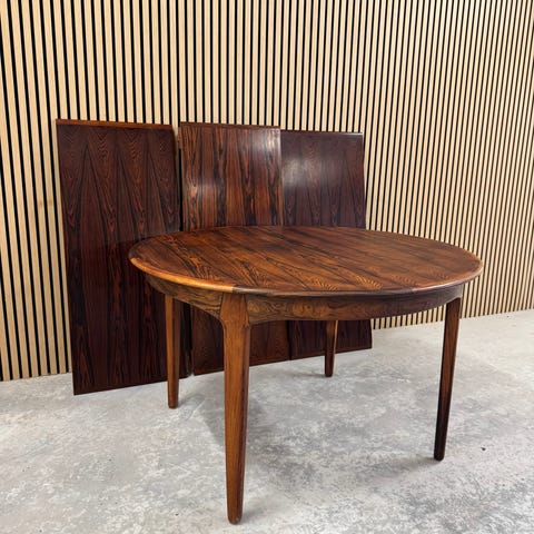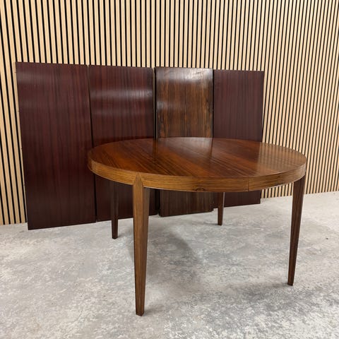 Spisebordet er udført i palisander, med 2 tillægsplader.