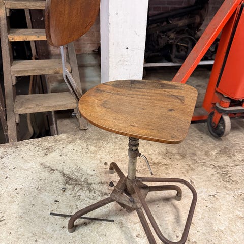 Stol i træ med sort vævet sæde og ryg. Stolen har vævede stropper, der danner både sæde og rygstøtte. Den er velegnet til indendørs brug og har aldrig været brugt udenfor.