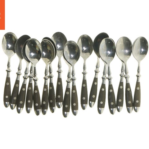 Sæt af 6 skeer med Teak træhåndtag og Messing beslag (str. 15 cm. 6 styk)
