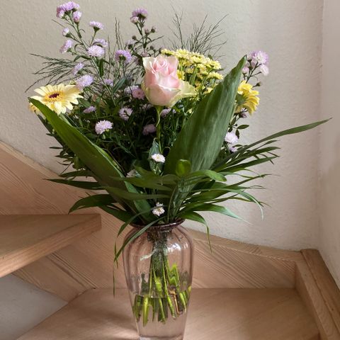 Den buttet vase er ca. 12 cm høj, dia hvor den er mest buttet ca. 7 cm