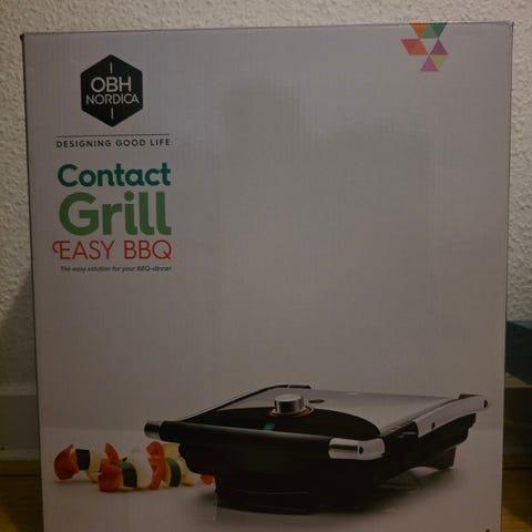 Elektrisk grill fra OBH Nordica. Model Quickgrill Easy Clean. Den har justerbar temperatur og er nem at rengøre, da man kan tage de 2 stegeplader af. Perfekt til at grille store bøffer, grøntsager, pølser m.m. Kan også bruges til at lave sandwich. Kan også hentes i Stenløse.