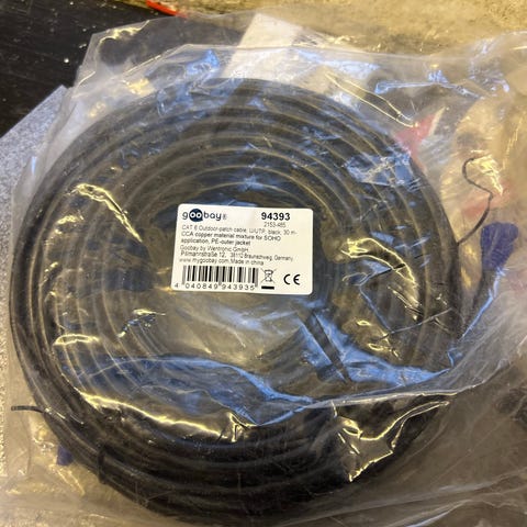Flere forskellige netværkskabler, forskellige længder og forskellige farver. Hvide, sorte, gule, røde, grønne, blå.