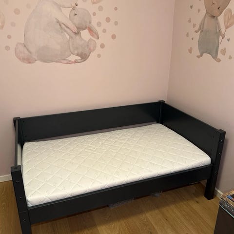 Juniorsengen kan både være almindelig og laves til halvhøj. Den har høj kant, så vores børn har brugt den siden de var 3 år.