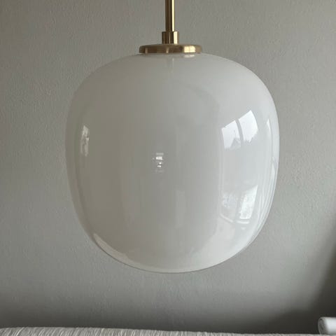 Louis Poulsen VL 45 Radiolus Pendel lampe designet af Wilhelm Lauritzen. Lampen har en rund, orange glaslampeform og er velegnet til ophæng i loftet som pendel. Den kombinerer funktionelt design med klassisk æstetik.