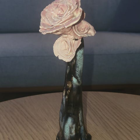 Blå blomst, høj fod 21 cm. Fin og hel stand