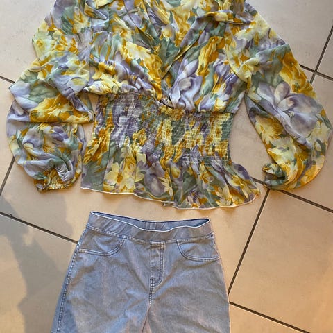 Only strik og trompet elastik bukser brugt med brugsspor- bukser har reperation midt ene ben( se 2 sidste billeder.