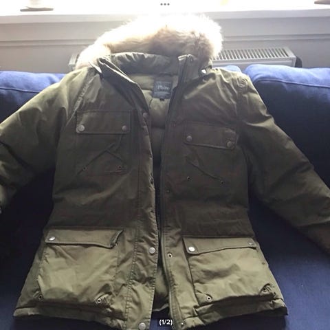 V’er de terre et Phine dun jakke. Brug få gange. Hætte med pelskant der kan tages af. Nypris kr. 2500