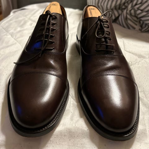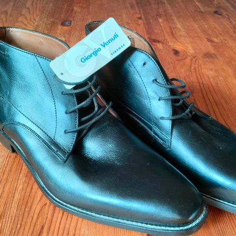 Klassisk aftensko i størrelse 42, sort farve og lavet i læder. Designet til formelle lejligheder og passer til herre.