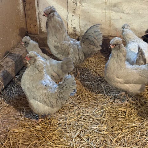 Engelsk araucana laver blå 🪺 og de har en flot grå farve. På nummer 1 billede kan I se hvordan de bliver som voksne