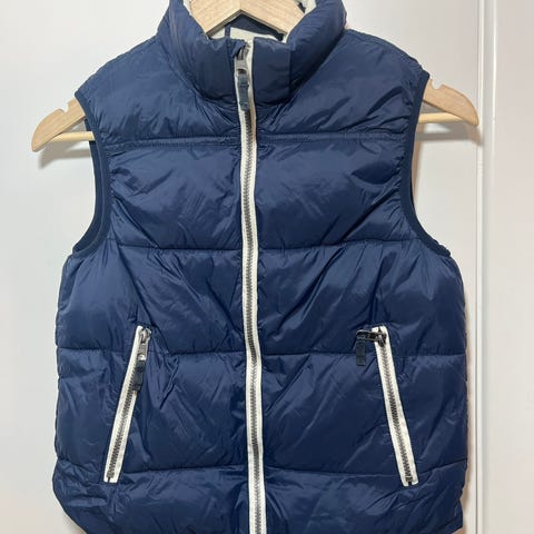 H&M bomberjakke til dreng i størrelse 122/128 Jakken er grøn og lavet af bomuld. Den har en quiltet overflade og lynlås foran. Jakken har ribkanter ved ærmer og talje.