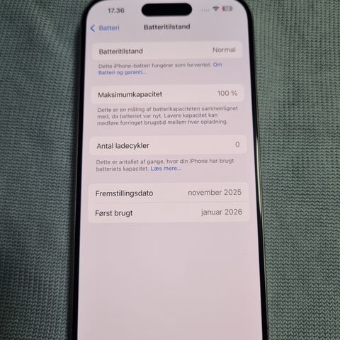 Ny, ubrugt 15 Pro, batteri 100%
