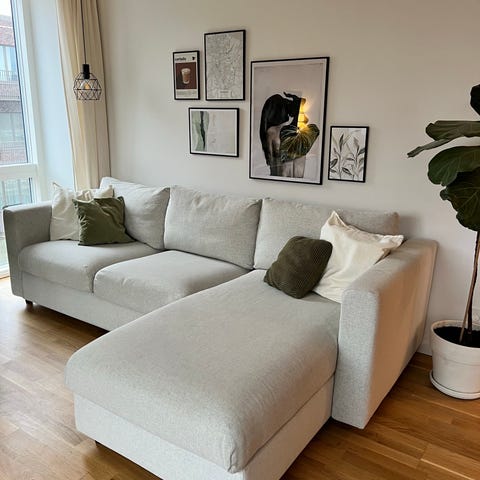 IKEA 3-pers. sofa med chaiselong i lysegrå