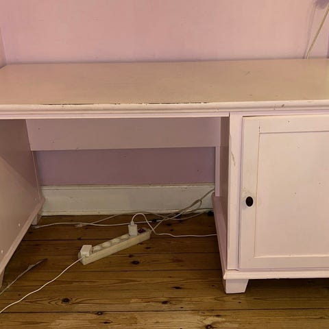Bordet er godt brugt, men med lidt god vilje og knofedt kan det sagtens bruges fortsat, så hvis der er nogen som vil overtage det inden vi smider det til storskrald, så kom endelig og hent det. Ring eller skriv for aftale. Er ret fleks for tiden og der kan parkeres lige foran indgangen til vores bygning. Jeg har værktøj til at skille det ad, hvis det bliver nødvendigt.