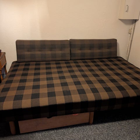 3-personers: Har en smuk, naturlig patina og brugsslid, der giver den sjæl (se billeder). Ingen huller.