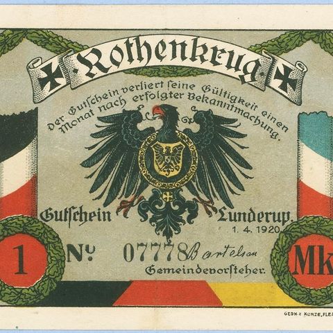 Broager. Nødpengeseddel 1919. 1 Mark