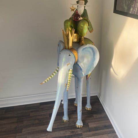 Vitra Elephant børnestol/skulptur i rødt træ. Kan bruges som stol eller som dekorativt møbel. Designet af Eames-brødrene og produceret i begrænset antal. Nypris 15000.