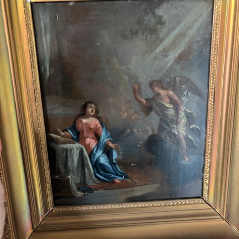 1600-tals maleri i olie på træ af et lidende Kristus hovedet med tornekrone. Meget ekspressivt, sandsynligvis fra Holland. Mål: 48 x 54 cm.