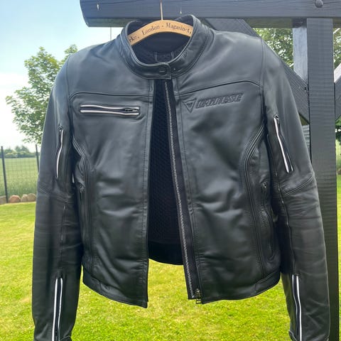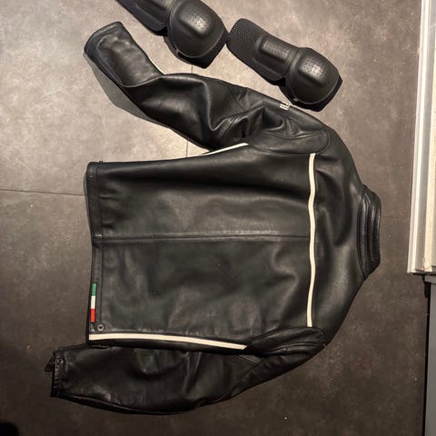 Dainese Læderjakke og buks mærket i jakken er anført med tallet 48, se foto.