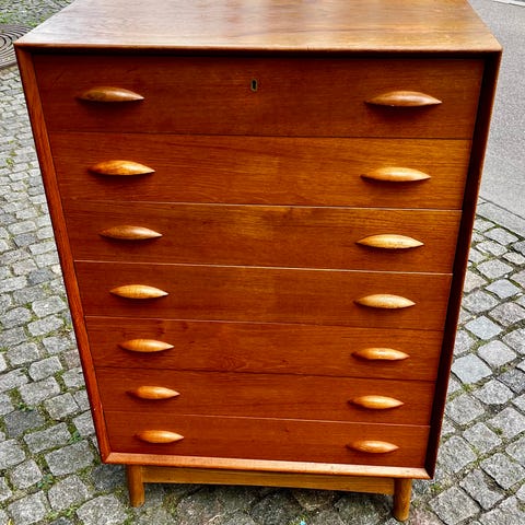 Smuk teak kommode med 6 skuffer