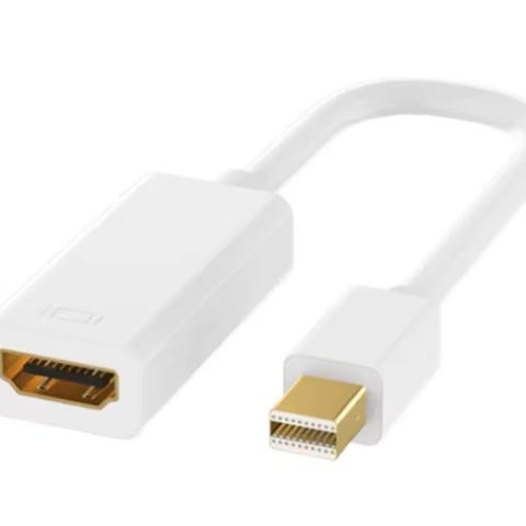 Apple Mini DisplayPort til HDMI kabel i hvid farve. Kabel tilslutter enheder med Mini DisplayPort til skærme eller TV med HDMI-indgang. Velegnet til brug med kompatible Apple-enheder.