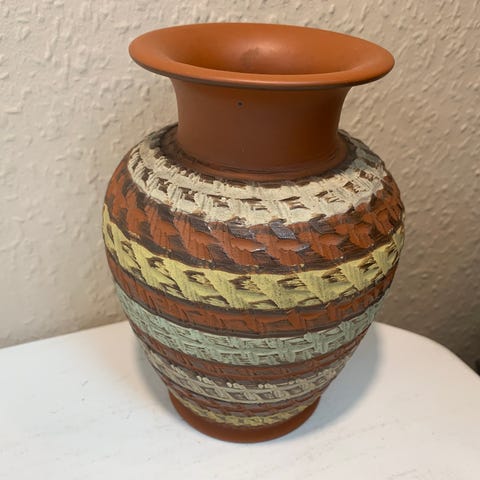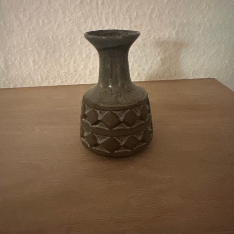 FLT XL retro stentøjsvase Studio Keramik, vasen er mærket "Handarbeit" og signeret. Fin "buttet" form med kort hals og bred åbning. Fint ringmønster i keramikken ved halsen of FLOT decor på hele vasen. FIN blank saltglasur i fine Cobalt, brune og beige farver. FIN XL retro,,,!! Vasen er uden skader eller skår.