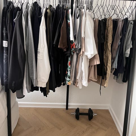 Vi sælger vores HAY garderobestativ da vi har fået en indbygge løsning.