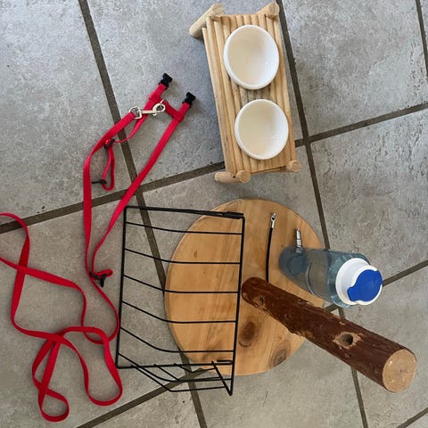 Her er et par tilbehør til kaniner, som sælges da vi ikke har kanin længere. Tingene har kun været brugt i 2 små måneder (høhækken har aldrig været brugt og børsten kun én gang), så det hele er som nyt.