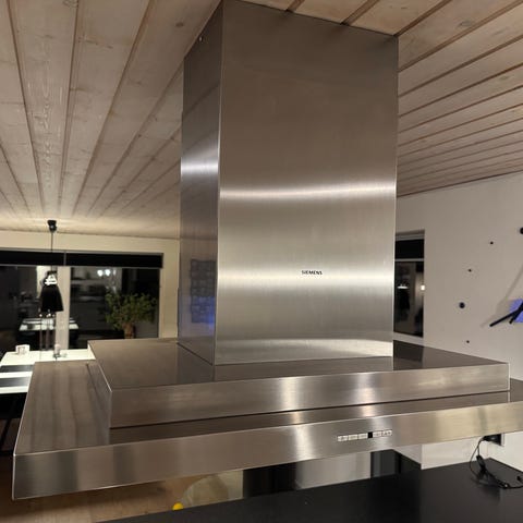 Siemens emhætte i rustfrit stål til vægmontering. 90 cm i bredden. Emhætten er designet til effektiv ventilation i køkkenet og har en moderne finish i rustfrit stål. Både lys (LED) og sug virker upåklageligt. Udskiftes kun fordi vi skal have monteret overskabe med indbygget emhætte i stedet. Emhætten er afmonteret og kan afhentes i 2860 Søborg. Sendes ikke.